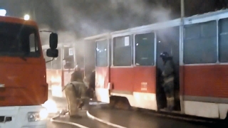 В центре Саратова пожарные вновь тушили трамвай
