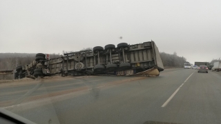 Сегодня утром в Саратовском районе в кювет улетела фура