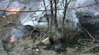 Иномарка с пьяным водителем вылетела с трассы и загорелась