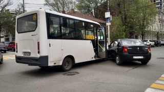 Около часа назад в центре Саратова в столкновении маршрутки и иномарки пострадала