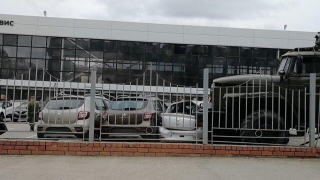 На Московском шоссе военный грузовик протаранил забор автосалона