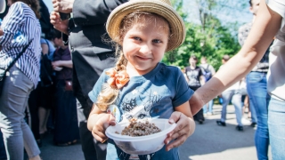 Саратовцы поют "Землянку" и стоят в очереди за солдатской кашей