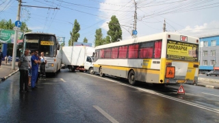 Небольшая авария с участием двух автобусов и "Газели" омрачила