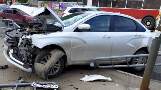 На проспекте 50 лет Октября отечественный седан вылетел на тротуар