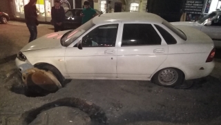 В центре Саратова "Приора" провалилась в ремонтируемый люк