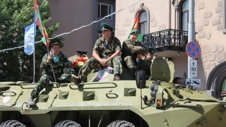 Саратовские пограничники устроили марш на бронетехнике по центру города