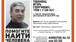 В Заводском районе Саратовской области без вести пропал 60-летний Игорь Тевонянц