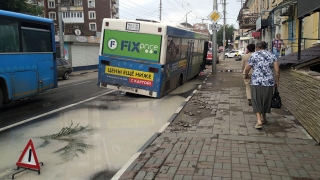 В центре Саратова автобус провалился в яму на проезжей части