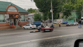 На скользком асфальте проспекта Строителей перевернулась "Гранта"