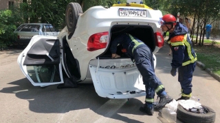На 50 лет Октября машина вылетела на трамвайные пути и сгорела