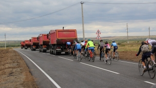Дорогу к "Гагарину" открыли губернатор, самосвалы и дети на велосипедах