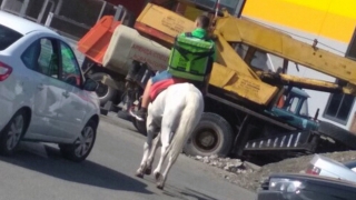 Вчера в Заводском районе Саратова жители заметили доставщика еды на белом коне
