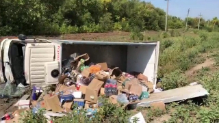 Сегодня в Балаковском районе Саратовской области в кювет вылетел грузовик с алкоголем. Об