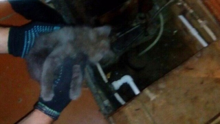 Сегодня вечером саратовские спасатели вернули свободу котенку