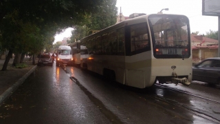 В центре Саратова не поделили дорогу трамвай и маршрутка. Движение блокировано