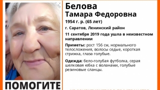В Саратове найдена пропавшая 65-летняя Тамара Белова. Об этом сообщает поисковый