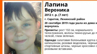 Пропавшая вчера в Ленинском районе Саратова 7-летняя Вероника Лапина сегодня утром