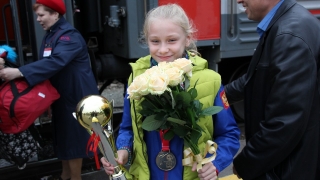Чемпионку Евгению Фурцеву встречали на саратовском вокзале цветами и сладостями