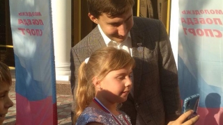 Маша Рыжова получила Кубок Сергея Карякина из рук самого гроссмейстера