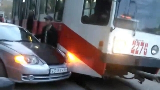Трамвай на Слонова научил автохама внимательнее парковаться