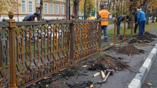 В Саратове продолжается установка исторической чугунной ограды в саду