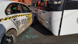 Около вокзала не разъехались автобус и такси. Пострадали двое детей