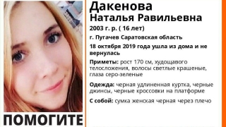 В Пугачеве Саратовской области пропала без вести 16-летняя Наталья Дакенова