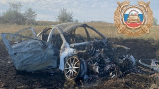 У саратовского села перевернулся и сгорел "Мерседес"