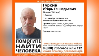 В Саратове ищут без вести пропавшего 64-летнего Игоря Гуркина
