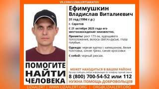 В Саратове ищут без вести пропавшего 31-летнего Владислава Ефимушкина