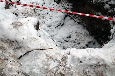 "У входа в поликлинику (учреждение расположено на пересечении ул. Московской и Комсомольской) вырыли котлован. Работы там никакие не ведутся, а яма даже не огорожена нормально - только ленточкой. Дети могут по неосторожности свалиться в этот котлован. И мамочки с колясками проходят мимо с опаской. Тем более из-за того, что не всегда успевают посыпать тротуары песком, пешеходы могут в эту яму просто "съехать". Кто-то предпринял меры - положил у края котлована кусок трубы, но вниз можно улететь и вместе с ним", - рассказали граждане.