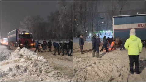 09:00 Всем миром. Жители Саратова сами откопали из снега фуры и бензовозы 4